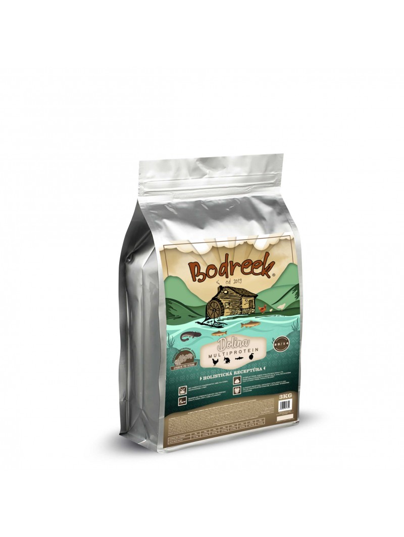Receptúra Dolina bola navrhnutá ako krmivo vhodné pre dospelé psy a psích seniorov. Východiskovou receptúrou by mala byť najmä pre stredné a väčšie, pastierske, ovčiarske plemená a plemená horského typu. Ale aj pre psy, ktoré si vyžadujú nižší príjem bielkovín. Odporúčame ju rotovať s ostatnými receptúrami Bodreek. Je zostavená podľa požiadaviek chovateľov, s kombináciou plodnosť podporujúcich prvkov, ako je kyselina listová, vitamín E, a železo v správnych pomeroch. Vysoká stráviteľnosť, antioxidanty a nutričné hodnoty sú vhodné pre psy všetkých plemien v bežnej a nižšej záťaži, ako aj pre seniorov bez zdravotných komplikácií.