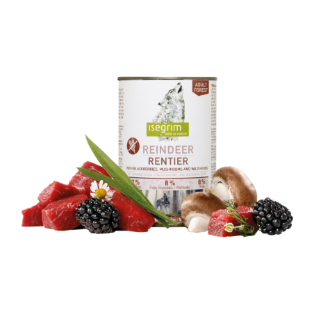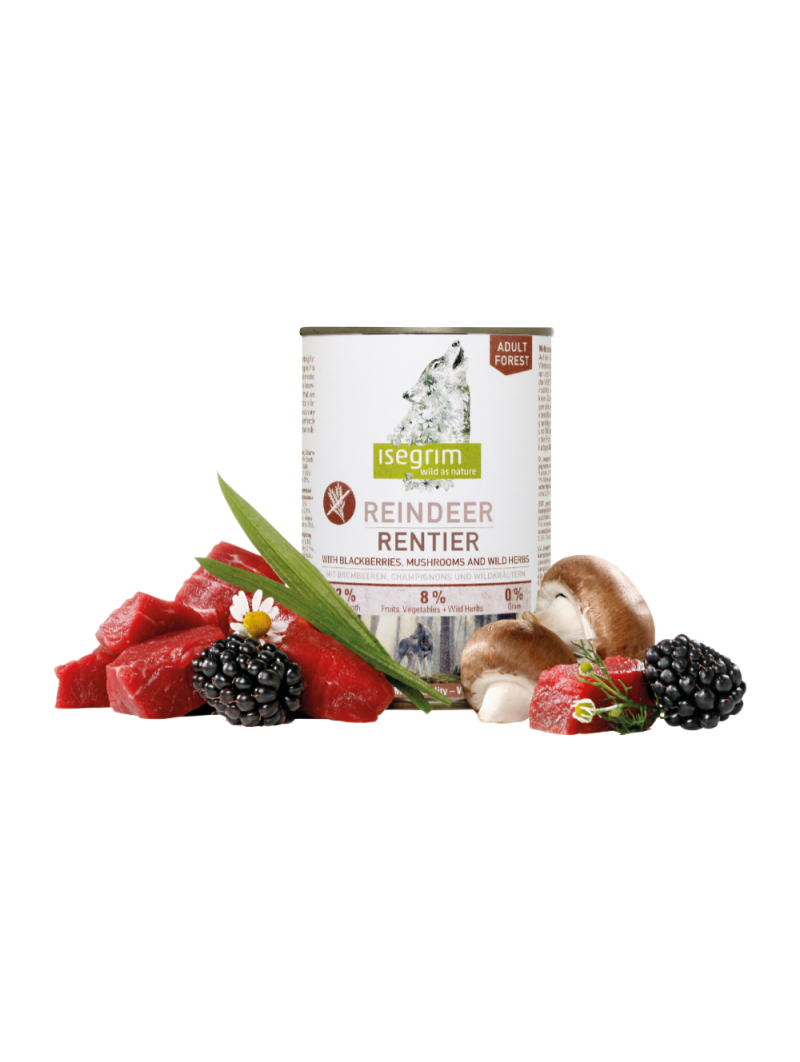 Exkluzívne prírodné sobie mäso je dokonalým zdrojom bielkovín tejto kompletnej konzervy. Kombinácia černíc, húb a divokých bylín predstavuje všetko, čo pes potrebuje pre svoje zdravie.