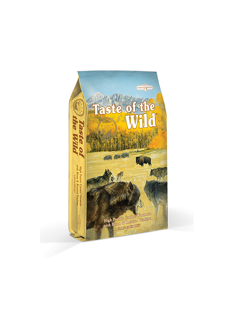 Krmivo Taste of the Wild - High Prairie je vyrábané v USA z delikátneho mäsa bizónov a zveriny, s bohatým obsahom ovocia a zeleniny. Namiesto obilnín obsahuje zdravé sladké zemiaky a hrášok. Toto krmivo ponúka Vášmu psovi v jeho všetkých životných etapách prirodzené antioxidanty a podporuje jeho zdravý imunitný systém. Toto krmivo pre psov stavia na pôvodnom životnom štýle psov, avšak zohľadňuje aj ich zmenený životný štýl s menej pohybom a pravidelným kŕmením.